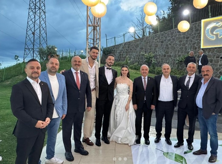 7月5日讯 今日申京哥哥(上图黑衣)大婚,申京到场参与庆祝。