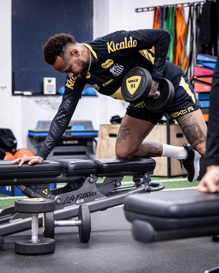 7月1日讯 桑托斯俱乐部更新社媒动态,晒出内马尔在健身房训练的照片。